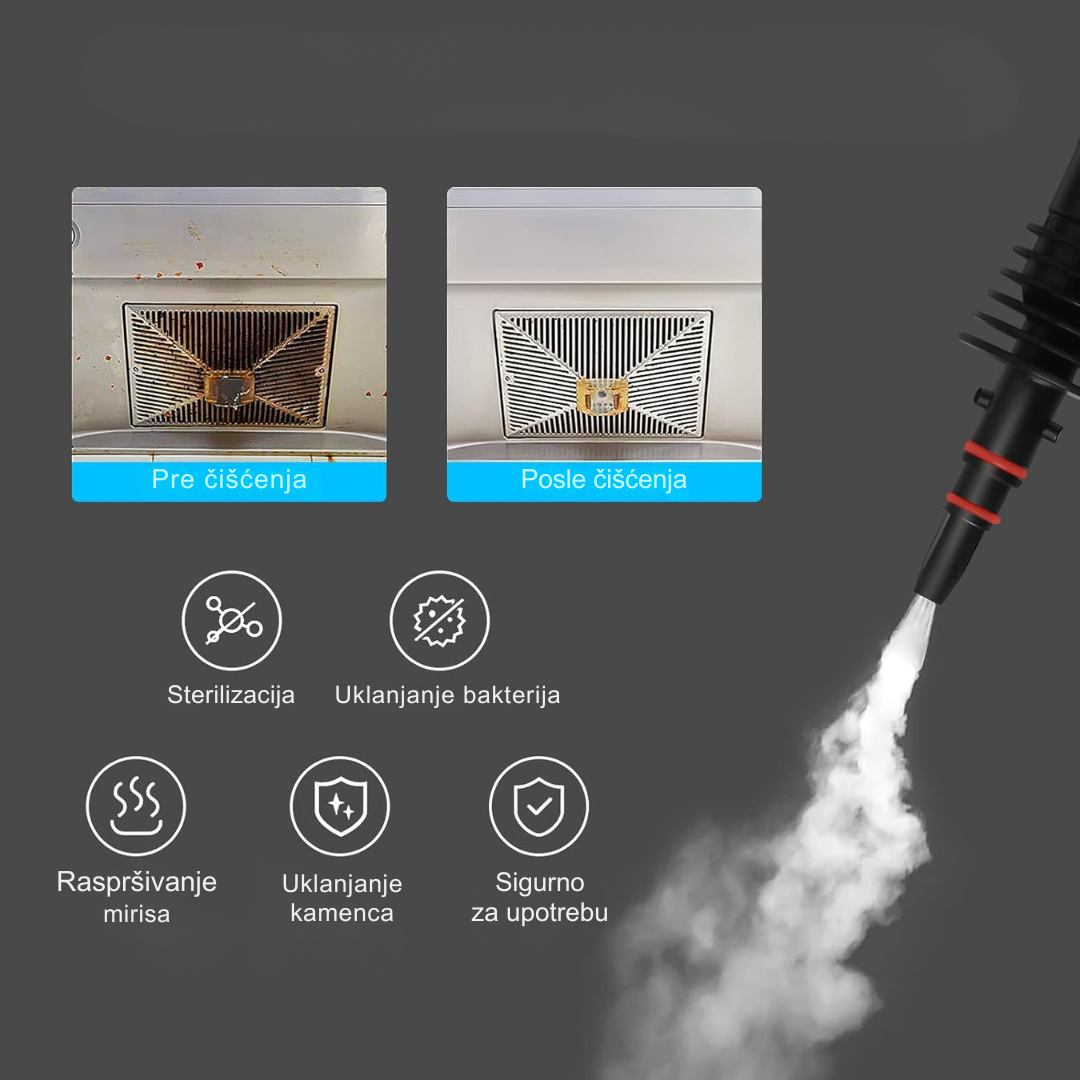 ✅ Moćna para pod pritiskom (1050W) – čisti i dezinfikuje bez hemikalija