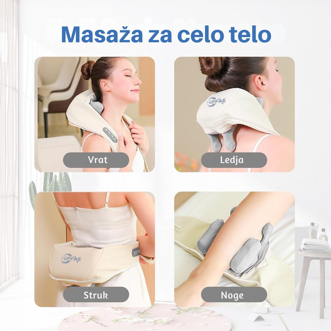 Ovaj revolucionarni 5D masažer za vrat i ramena koristi naprednu tehnologiju dvostrukog pritiska i toplotne terapije kako bi vam pružio iskustvo duboke relaksacije – bilo kada, bilo gdje.