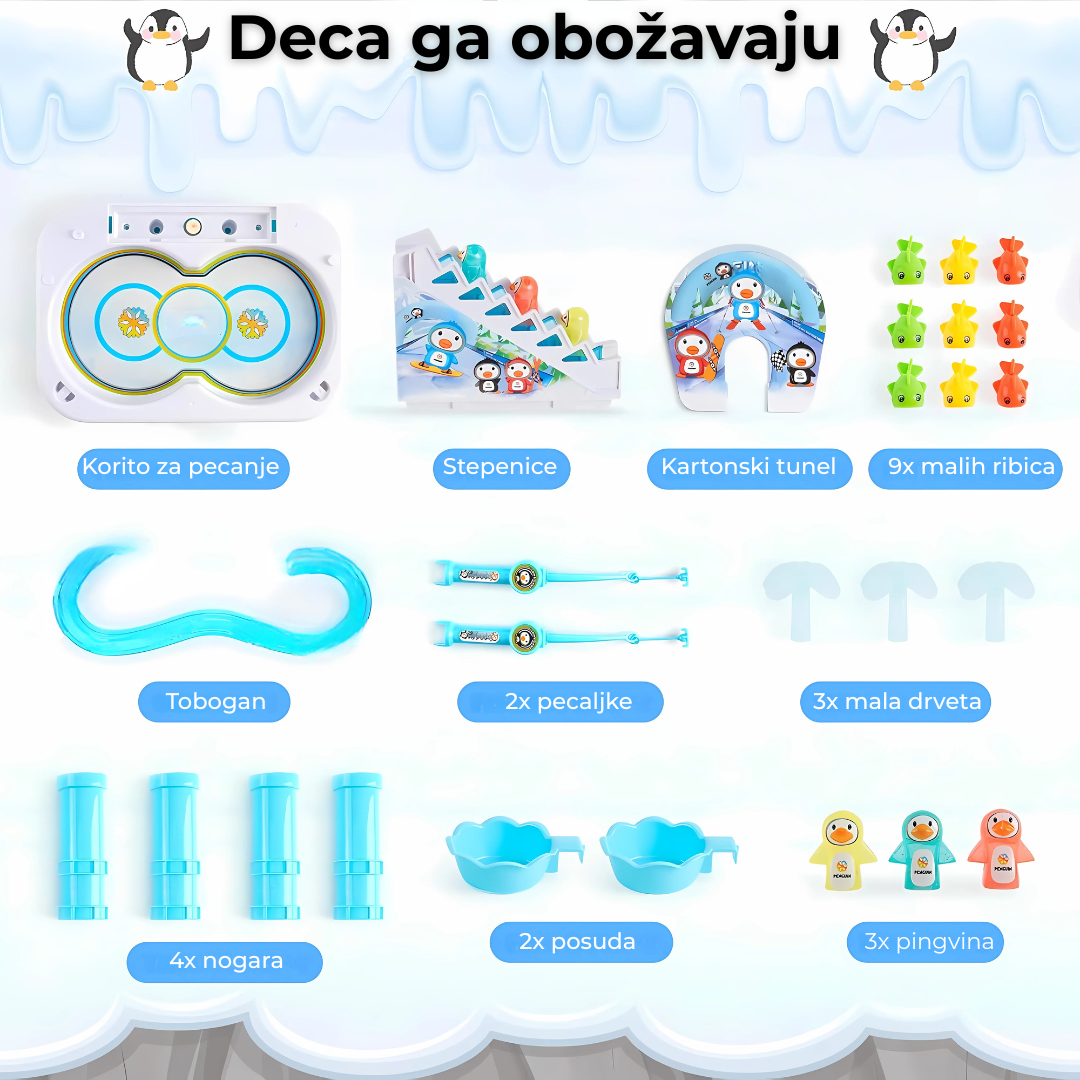 – 3 pingvina koji se automatski penju i spuštaju niz tobogan –